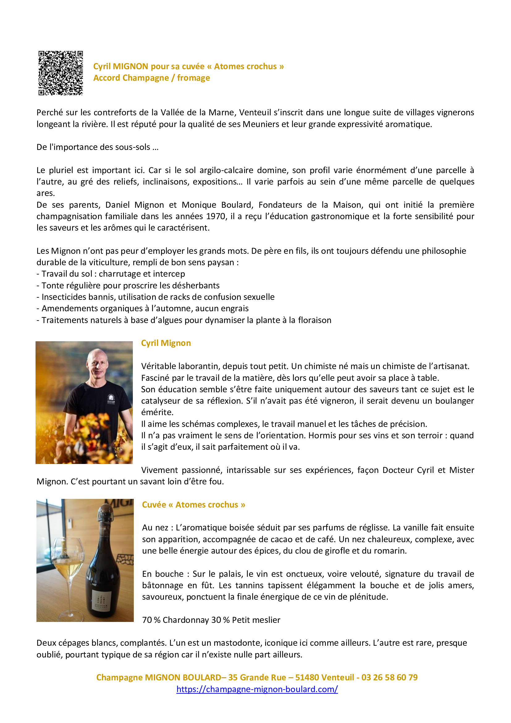 pour sa cuvée « Atomes crochus » (30 % Petit meslier 70 % Chardonnay)