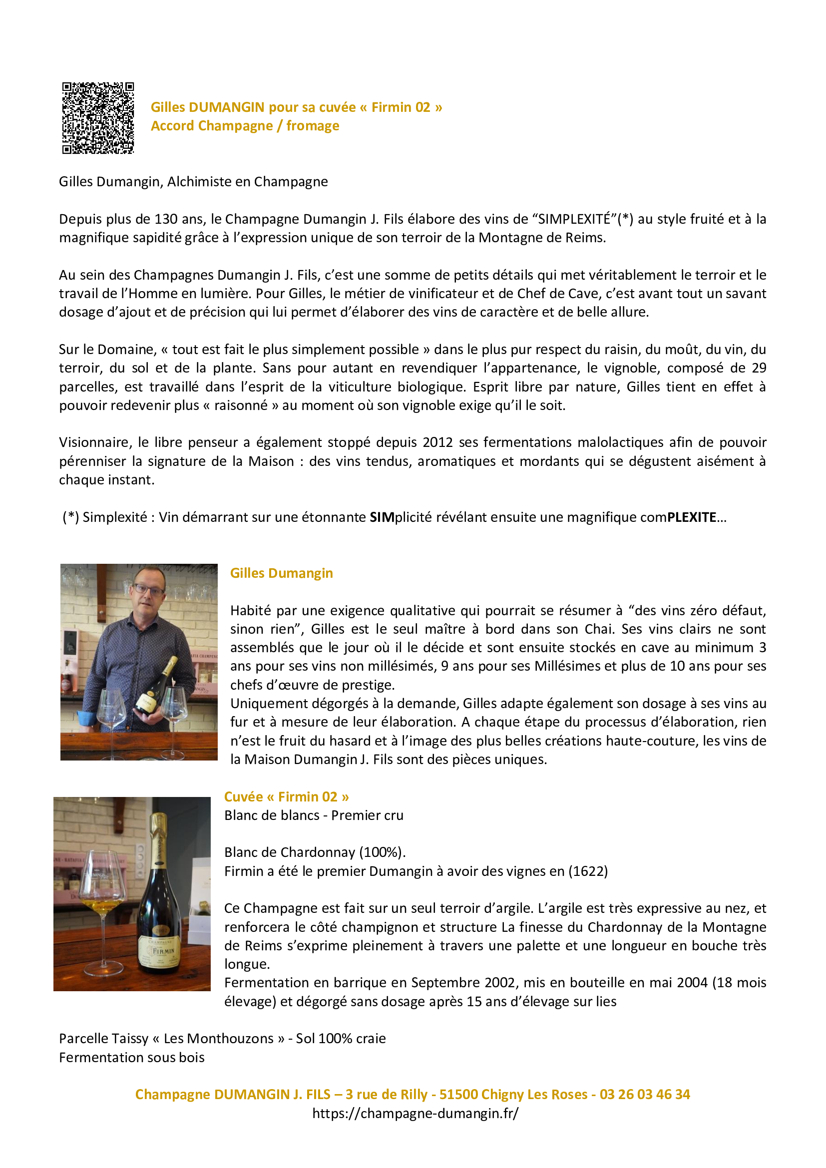pour sa cuvée « Firmin 2002 » (Blanc de blancs 100 % Chardonnay)