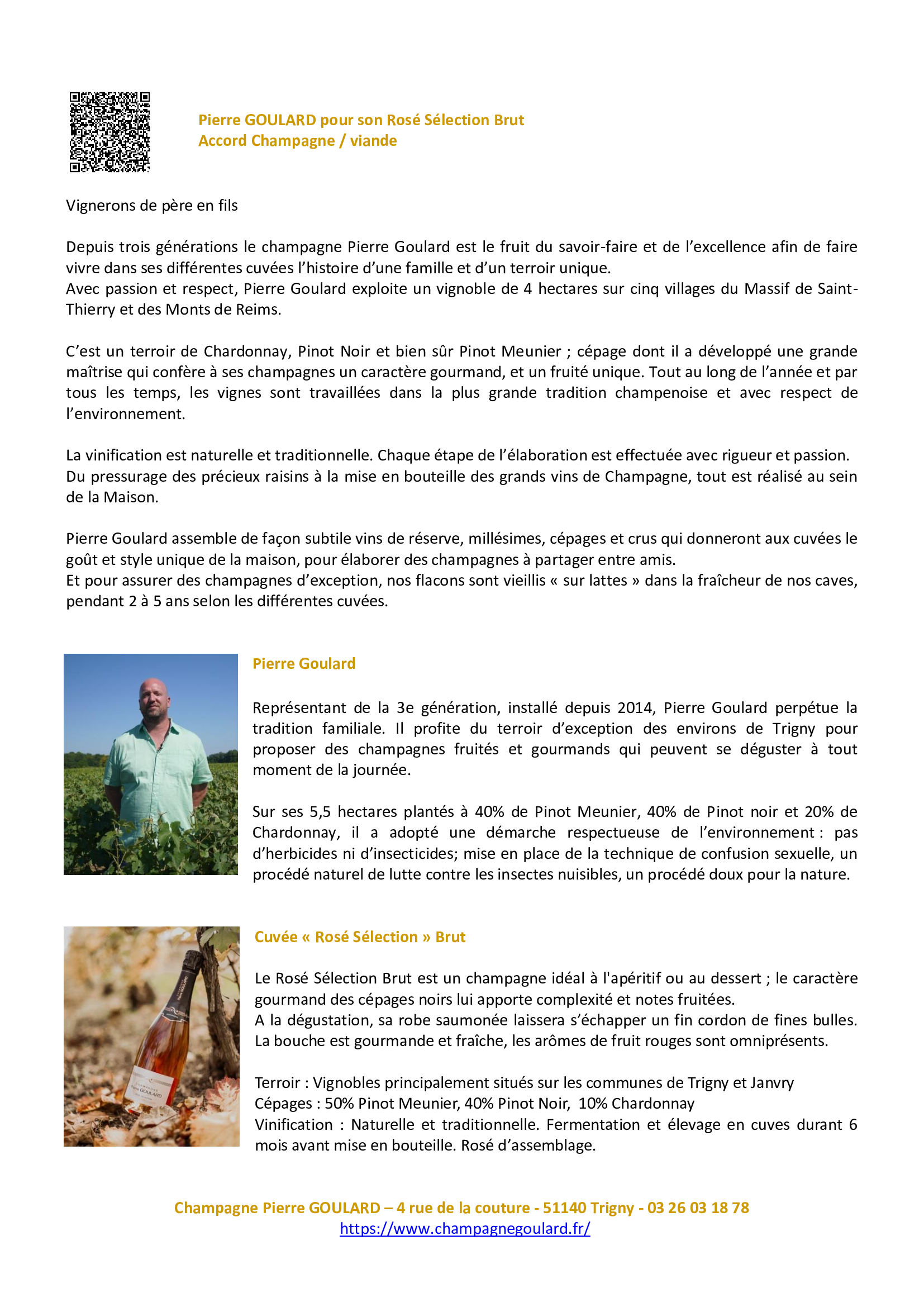 pour son Brut sélection rosé (50 % Meunier 10 % Chardonnay 40 % Pinot noir)